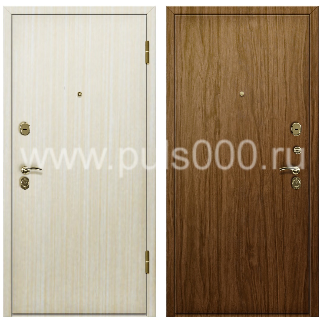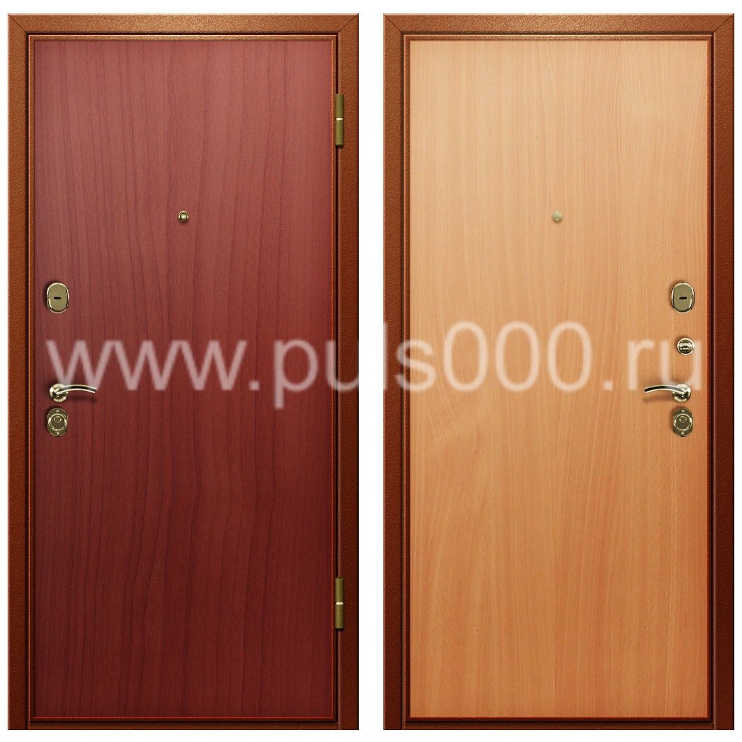 Наружная поверхность окрашивается порошковым составом способом напыления в любой цвет, по желанию заказчика. Также для отделки используются ламинат, экокожа, винорит и другие декоративные материалы. Железный лист толщиной от 2,2 мм обеспечивает требуемую жесткость конструкции и взломостойкость.